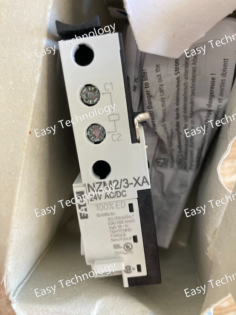 Technical Specifications Parameter Specification / Typical Value (To be Verified) Manufacturer / Brand Eaton Base Model Number NZM2/3-XA (Incomplete - requires suffix) Product Line NZM (Accessory for) Device Type Auxiliary Contact Block Compatible Breaker Frame NZM2, NZM3 Mounting Mounts directly onto the compatible NZM breaker Example Complete Model NZM2/3-XA11AC/DC (1 NO + 1 NC contacts, AC/DC voltage) NZM2/3-XA48AC/DC (2 NO + 2 NC contacts, AC/DC voltage) Contact Configuration Defined by suffix (e.g., "11" = 1NO+1NC, "48" = 2NO+2NC) Rated Operational Voltage (Ue) Defined by suffix (e.g., "AC/DC", "24DC", "230AC") Utilization Category AC-15 (for AC coils), DC-13 (for DC coils) Rated Current Typically a few Amperes (e.g., 3A @ 230V AC) for control circuits. Standards Compliance As part of the breaker assembly, it helps comply with IEC 60947-2.