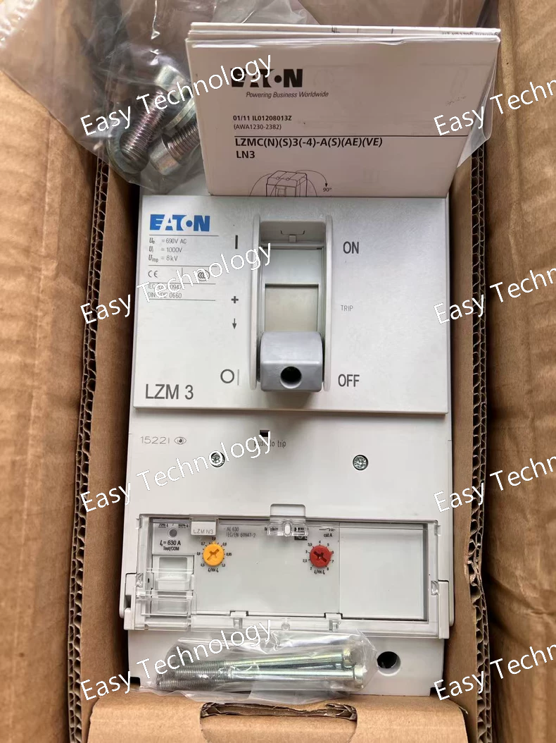 Technical Specifications Parameter Specification / Typical Value Manufacturer / Brand Eaton Model Number LZMN3-AE630 Product Line NZM Rated Current (Iₙ) 630 A Poles 3 Frame Size NZMN3-AE Rated Operational Voltage (Uₑ) 400/415 V AC (IEC) / 690 V AC Rated Insulation Voltage (Uᵢ) 690 V AC Rated Frequency 50/60 Hz Rated Ultimate Breaking Capacity (I꜀ᵤ) Typically 65 kA / 85 kA @ 400V (Must be verified from datasheet) Trip Unit Type Thermal-Magnetic (Non-Adjustable) Overload Protection (Ir) Fixed at 630A Short-Circuit Protection (Im) Fixed magnetic trip Installation Fixed Type Standards Compliance IEC 60947-2 Electrical Life Several thousand cycles (e.g., 5,000) Mechanical Life Tens of thousands of cycles (e.g., 20,000) Terminal Torque Refer to official manual (Specific torque for 630A terminals)