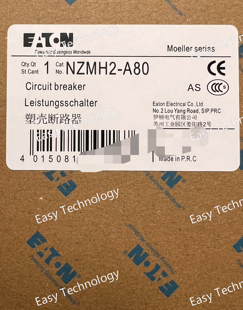 Technical Specifications Parameter Specification / Typical Value Manufacturer / Brand Eaton Model Number NZMH2-A80 Product Line NZM Rated Current (Iₙ) 80 A Poles 3 Frame Size NZMH2-A Rated Operational Voltage (Uₑ) 400/415 V AC (IEC) / 690 V AC Rated Insulation Voltage (Uᵢ) 690 V AC Rated Frequency 50/60 Hz Rated Ultimate Breaking Capacity (I꜀ᵤ) Typically 36 kA / 50 kA @ 400V (Must be verified from datasheet) Trip Unit Type Thermal-Magnetic (Non-Adjustable) Overload Protection (Ir) Fixed at 80A Short-Circuit Protection (Im) Fixed magnetic trip Installation Fixed Type Standards Compliance IEC 60947-2 Electrical Life Several thousand cycles (e.g., 5,000) Mechanical Life Tens of thousands of cycles (e.g., 20,000) Terminal Torque Refer to official manual (Specific torque for 80A terminals)
