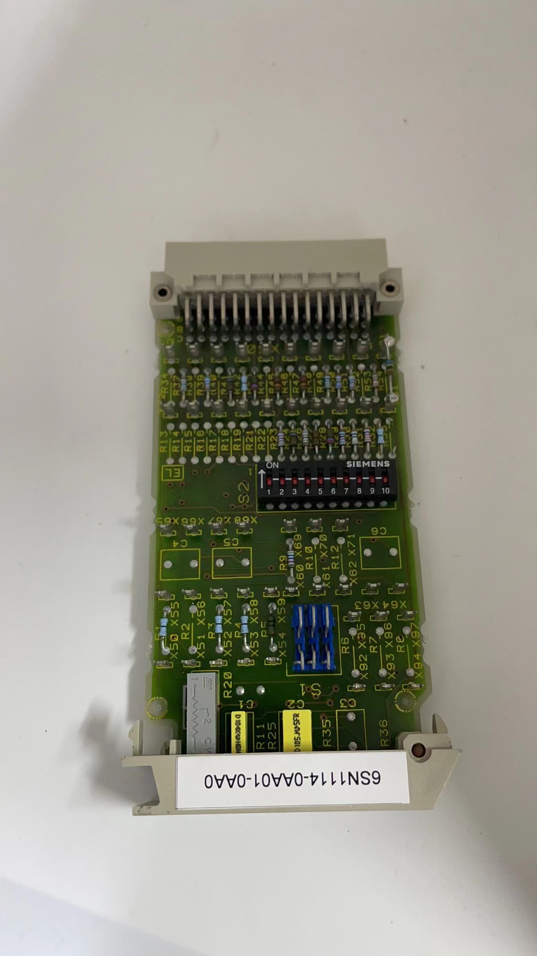 6SN1114-0AA01-0AA0 – Siemens SIMODRIVE 10A DC link supply module. Converts 3-phase 380-480V AC to 600V DC for legacy 611 drive systems. Fan-cooled, cabinet-mounted design.