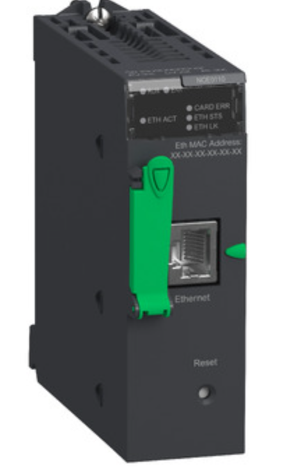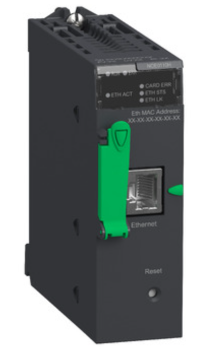 Enables Modicon M340 PLCs to connect to Ethernet/IP networks. Supports critical industrial protocols, ensuring efficient data transfer in automation systems. Compact design fits PLC backplanes, reliable for manufacturing environments.