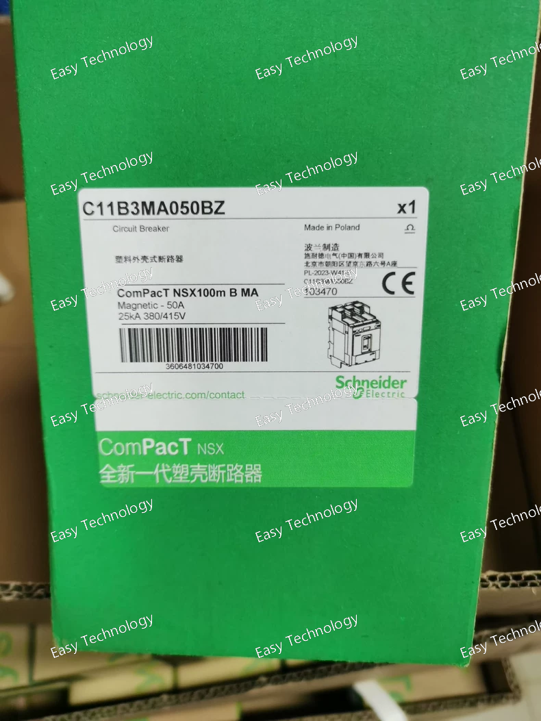 The Schneider Electric EZD160S3 100N3P is an EasyPact EZD series molded case circuit breaker (MCCB) designed for distribution applications. It is a 3-pole (3P) circuit breaker with a rated current of 100 A and a breaking capacity (Icu) of 50 kA at 400 V AC.
