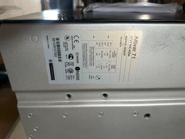 ATV71HC40N4 Category: Variable Frequency Drive (VFD) / AC Drive Manufacturer: Schneider Electric (Altivar 71 Series) : Power Rating: 40 kW (55 HP) Input Voltage: 380–480V AC, 3-phase Output Current: 75A (approx., verify exact model) Protection: IP20 enclosure, built-in braking transistor Control: Advanced motor control (sensorless vector, V/F modes) Communications: Built-in Modbus, optional fieldbus cards