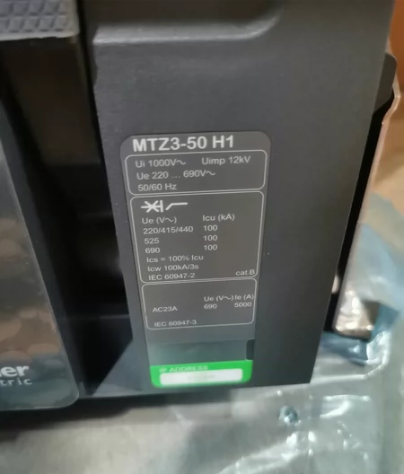 MTZ3-50H1 Category: Molded Case Circuit Breaker (MCCB) Manufacturer: Schneider Electric Key Specifications: • Rated Current: 50A • Poles: 3P (3-phase) • Breaking Capacity: 50kA at 415V AC • Tripping Unit: Thermal-magnetic (H1 series) • Voltage Rating: 690V AC • Mounting Type: Fixed