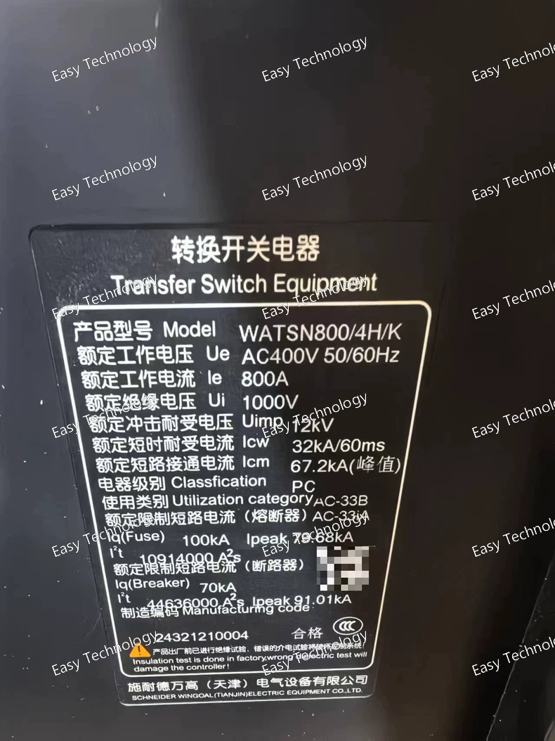The WATSNB-400/400.4CBR is an automatic transfer switch from the Schneider Electric WATS range . It is designed to ensure continuity of electrical supply by automatically transferring the load between a primary (normal) power source and a backup (emergency) power source, such as a generator