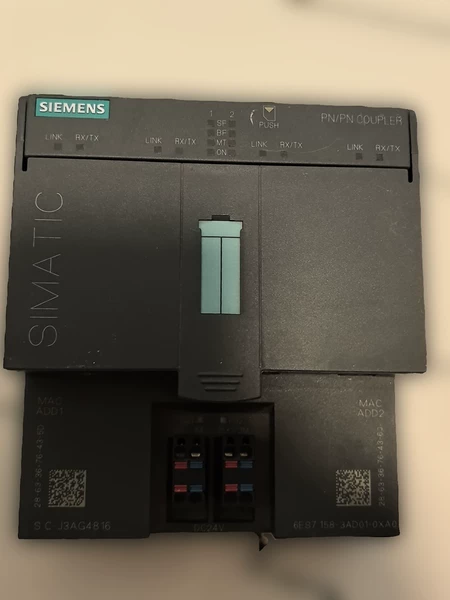 The SIEMENS SIMATIC DP distributed I/O PN/PN coupler 6ES7158-3AD01-0XA0 is used to connect two PROFINET networks, supports PROFIsafe data transmission and has a redundant power supply for industrial automation control systems.