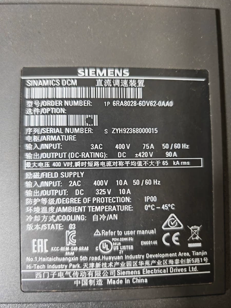 This SIEMENS 6RA8028-6DV62-0AA0 DC converter is designed for 4-quadrant drive systems in industrial automation control applications. It has high efficiency, high reliability and wide working range, and can meet the needs of power conversion under various complex working conditions.