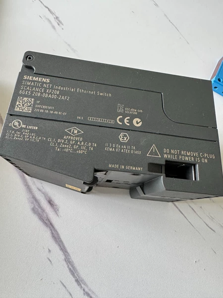 The SCALANCEXF208 is a high-performance, network-managed industrial Ethernet switch with eight 10/100Mbit/s RJ45 ports, redundant power input support, and integrated redundancy manager for industrial automation and process control systems.