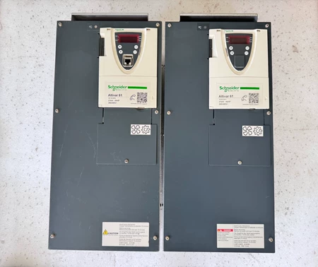 Schneider ATV61HD37N4Z VFD • 37kW/50HP 380-480V 3PH • 72A output • IP21 enclosure • Built-in: DC choke, braking • Protocols: Modbus TCP, EtherNet/IP • STO safety