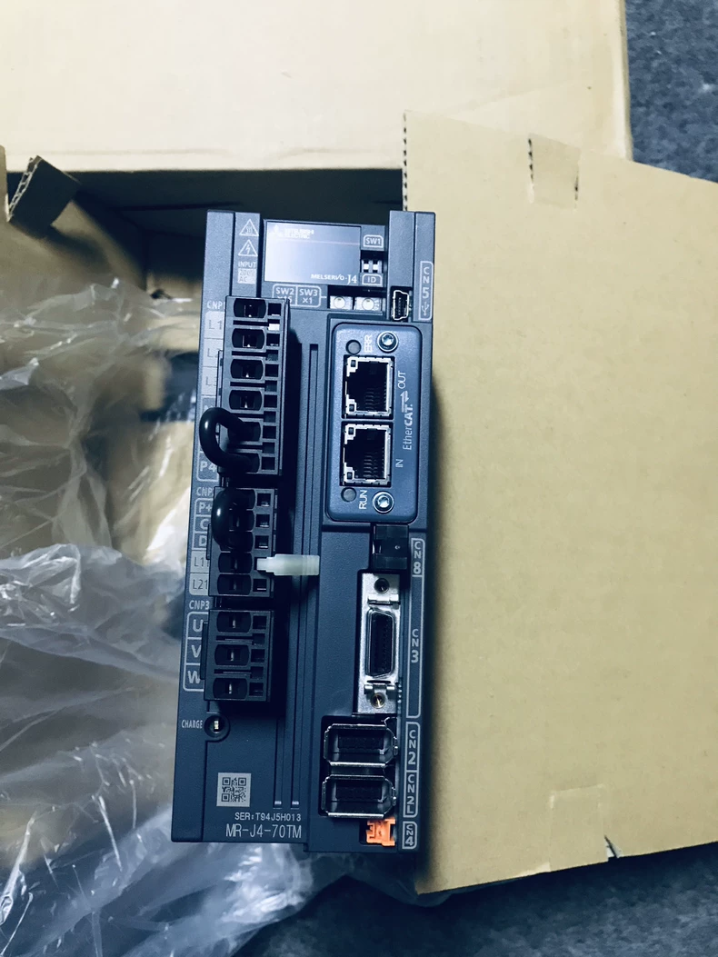 The MR-J4-70TM is a high-performance 0.75kW servo amplifier from Mitsubishi Electric's MR-J4 series, designed for precise motion control in industrial automation applications. This compact drive features built-in torque control mode for specialized applications requiring direct torque management.
