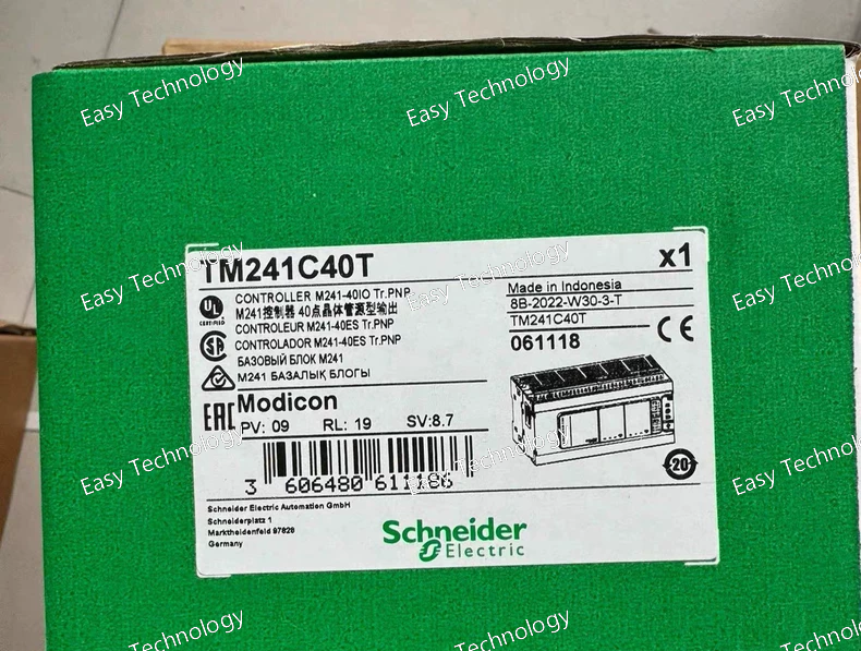 The Schneider Electric TM241C40T is a high-performance Modicon TM241 Logic Controller from the Modicon M241 series. This advanced PLC features a powerful processor, extensive embedded I/O (including transistor outputs), and dual Ethernet ports. It is designed for complex machine and process automation, supporting IEC 61131-3 programming with a large memory capacity. The transistor outputs provide fast switching for DC loads, making it suitable for applications requiring high-speed control and network integration.