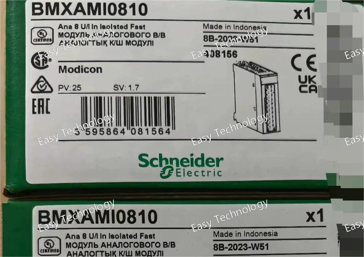 The Schneider Electric BMXAMI0810 is an 8-channel, high-precision analog input module for the Modicon M580/M340 PLC's BMX X80 rack. This module provides versatile signal acquisition, supporting voltage, current, thermocouple (T/C), and resistance temperature detector (RTD) inputs. It features channel-to-channel isolation and high resolution for accurate measurement in process control and monitoring applications.