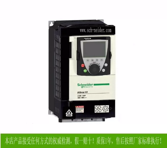 The Schneider ATV61/71HC40N4 is a 37 kW (50 HP) VFD for three-phase motors, with 380V-480V input and 0-590 Hz output, featuring V/f control and Sensorless Vector Control.