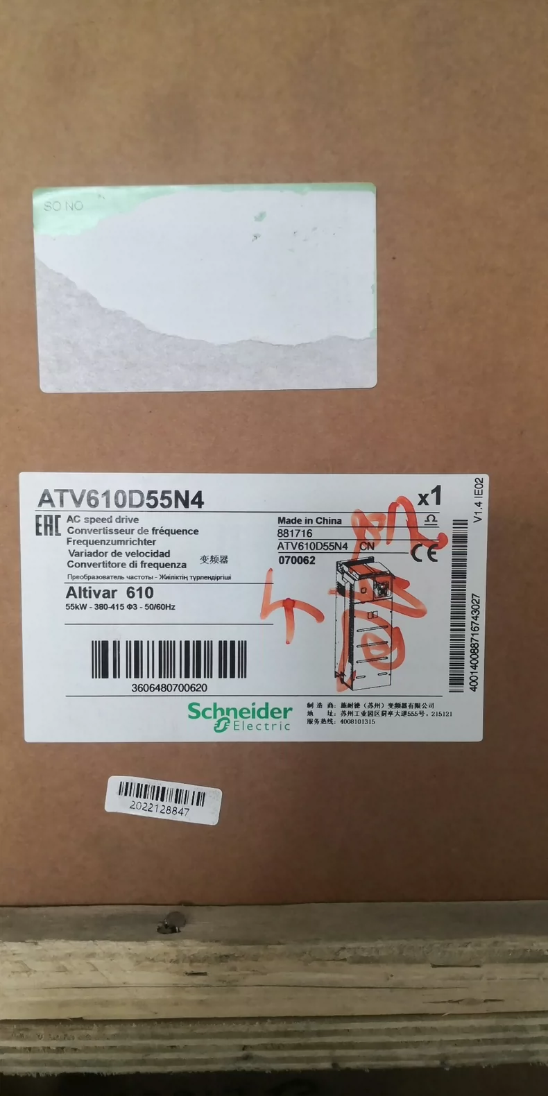 The Schneider ATV610D55N4 is a 55 kW (75 HP) VFD for three-phase motors, with 380V-480V input and 0-500 Hz output, featuring vector control and Modbus RTU.