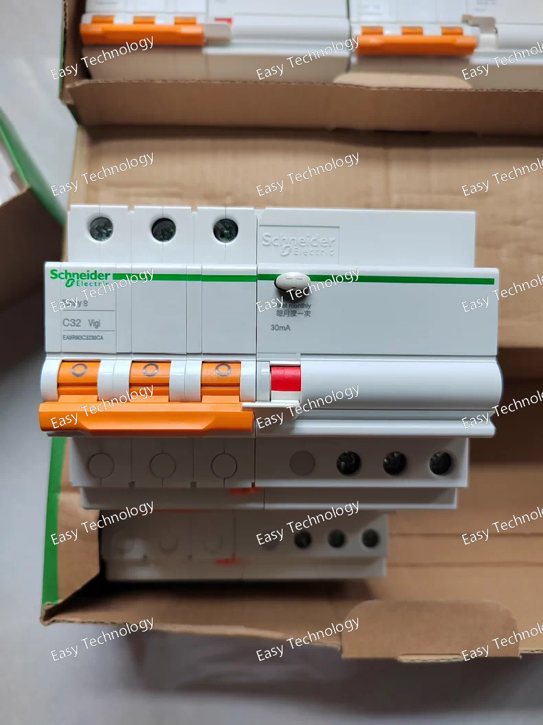 The Schneider Electric EA9R 3‑pole C32A 30 mA circuit breaker with integrated residual current protection is a miniature residual current circuit breaker with overcurrent protection (RCBO)