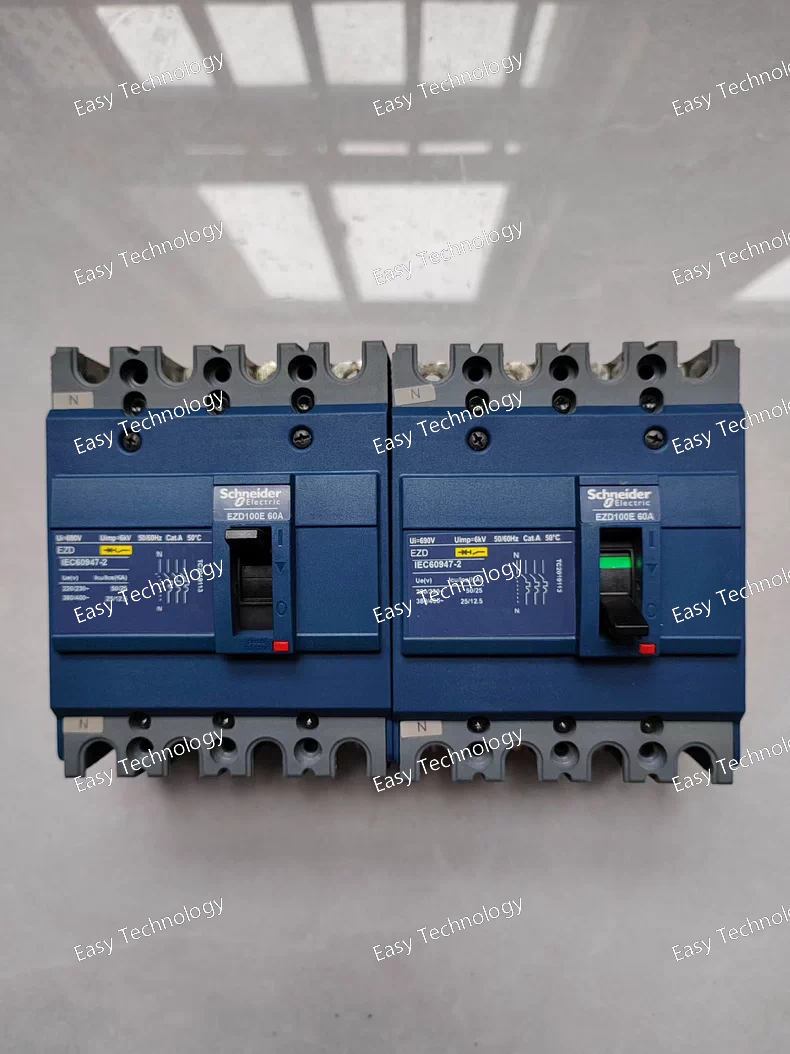 The Schneider Electric EZD 4P 60A is a 4-pole (3-phase + neutral), 60A molded case circuit breaker from the EZD series. This compact and economical device provides reliable overload and short-circuit protection for all live conductors in three-phase four-wire systems