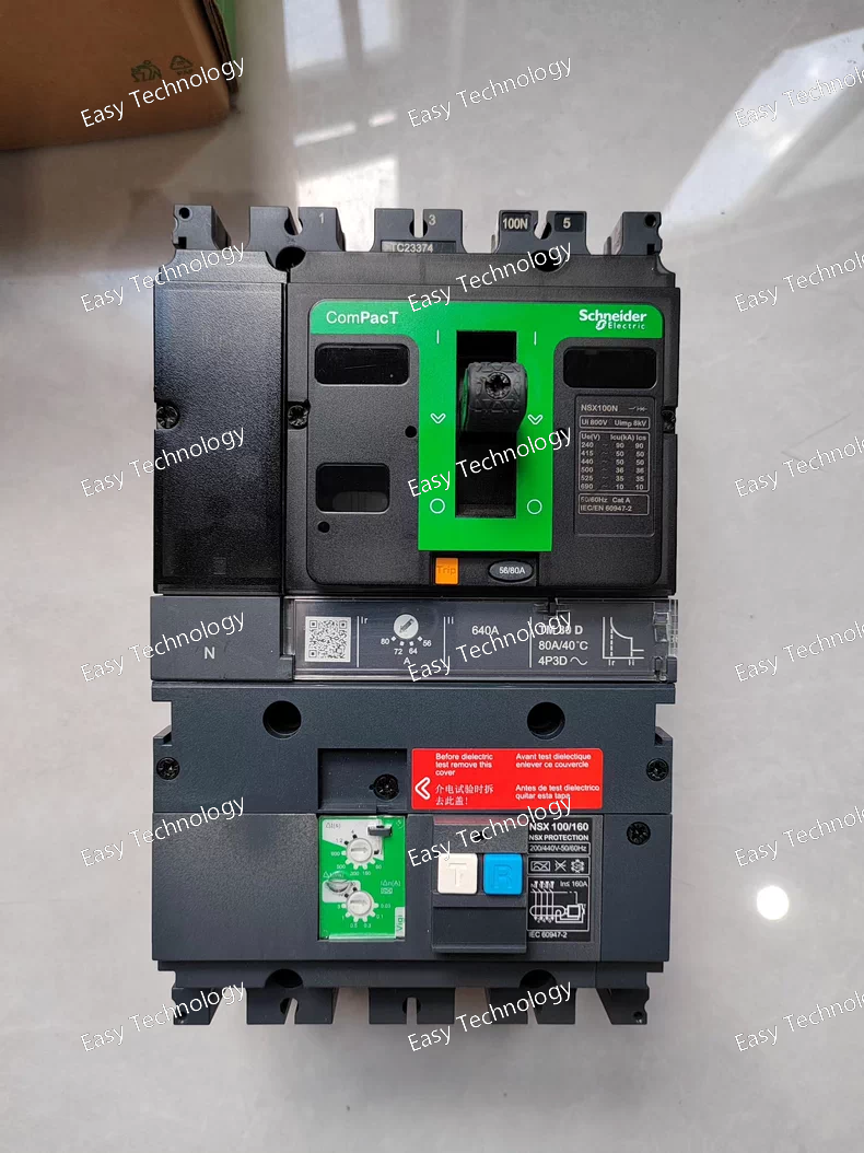 The Schneider Electric Compact NSX 4P 100N 80A is a 4-pole (3-phase + neutral), 80A molded case circuit breaker from the premium Compact NSX series. The "100N" designation indicates it is built on the 100A frame and is equipped with a standard thermal-magnetic (N) trip unit. It provides reliable and cost-effective overload and short-circuit protection for all live conductors in three-phase four-wire systems where neutral isolation and protection are required.