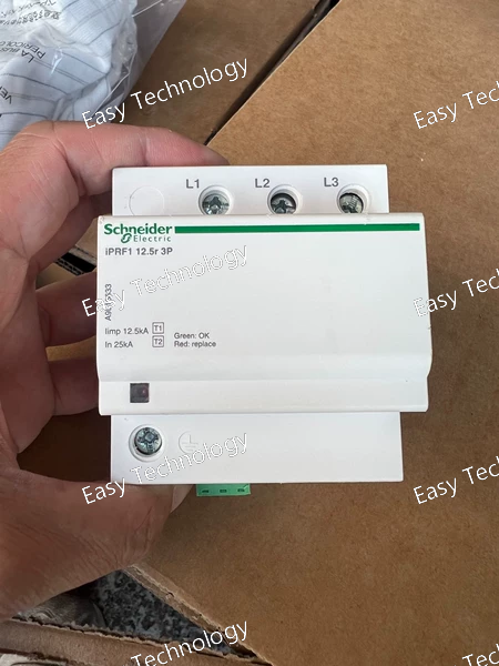 The Schneider Electric Acti 9 iPRF1 3P 12.5R is a Type 1 (Class I) Surge Protective Device from the iPRF1 series, featuring a 3-pole configuration and a built-in thermal disconnector ("R" version). It is designed to provide primary protection at the service entrance of three-phase electrical systems against direct and partial direct lightning strikes (10/350µs waveform).