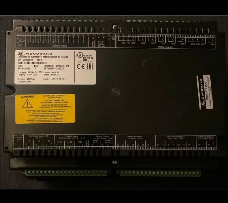 The Woodward CSC3-HU-W-B is a harsh-environment synchronization controller designed for offshore/marine power systems, featuring extreme durability and advanced paralleling logic.