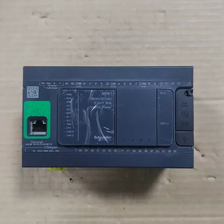 TM241CE24R: 24-input PLC module, 24V DC, RS-485, expandable, programmable with EcoStruxure.