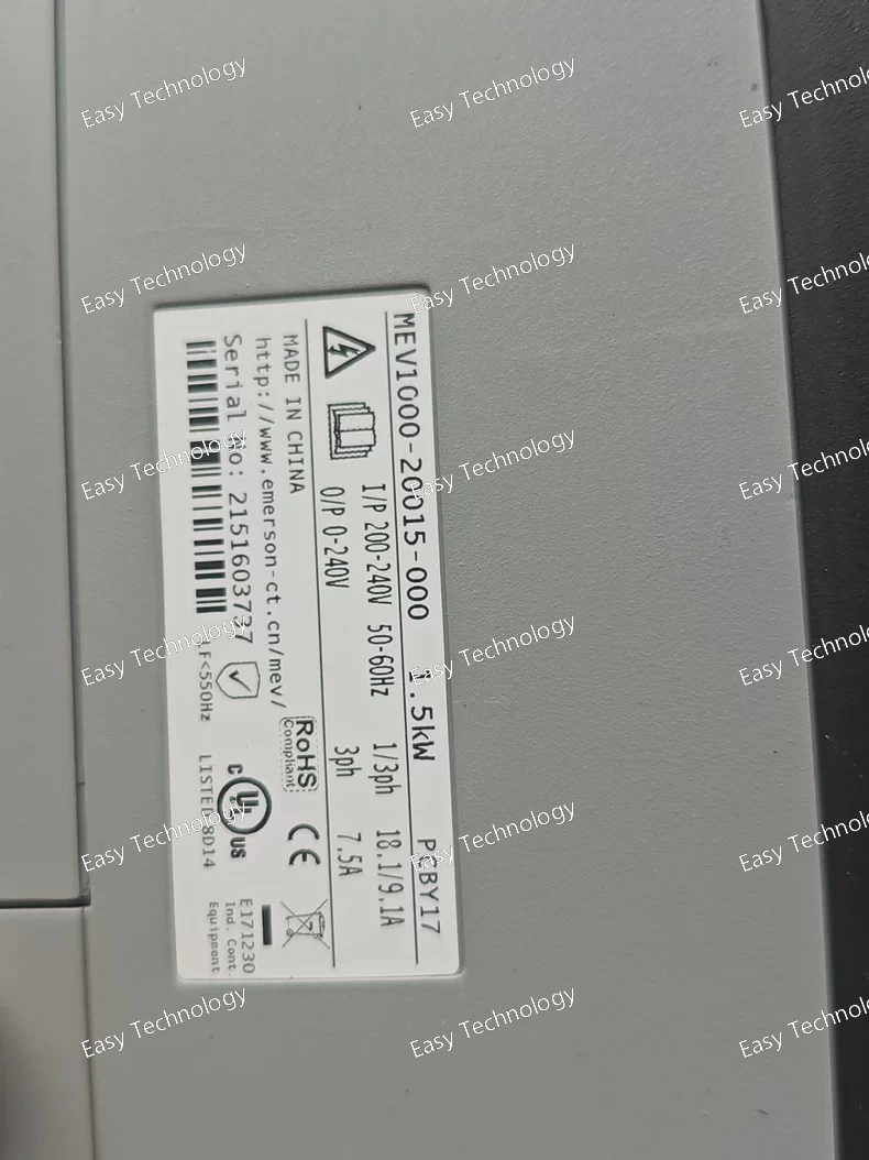 The Emerson MEV1000-20015-000 is a compact, economical AC variable frequency drive from the MEV1000 series. Designed for basic industrial applications requiring reliable motor control, this drive provides stable V/Hz control for three-phase induction motors.