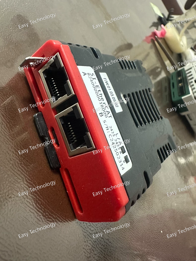 The Emerson SI-ETHERCAT (82400000018000) is a high-performance fieldbus communication option module from Control Techniques (part of Emerson/Nidec). It enables seamless integration of compatible AC and servo drives into an EtherCAT (Ethernet for Control Automation Technology) network. Designed for real-time, high-speed motion control applications, this module provides deterministic communication with minimal jitter, making it ideal for complex multi-axis systems. It supports the CANopen over EtherCAT (CoE) protocol, allowing full access to drive parameters, control words, and process data.