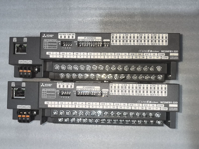 The NZ2MFB1-32DT is a high-density, 32-point digital I/O module for CC-Link IE Field Network systems, combining 16 inputs and 16 transistor outputs in a single compact unit. Designed for space-constrained applications, it enables efficient control and monitoring in modern automation systems.