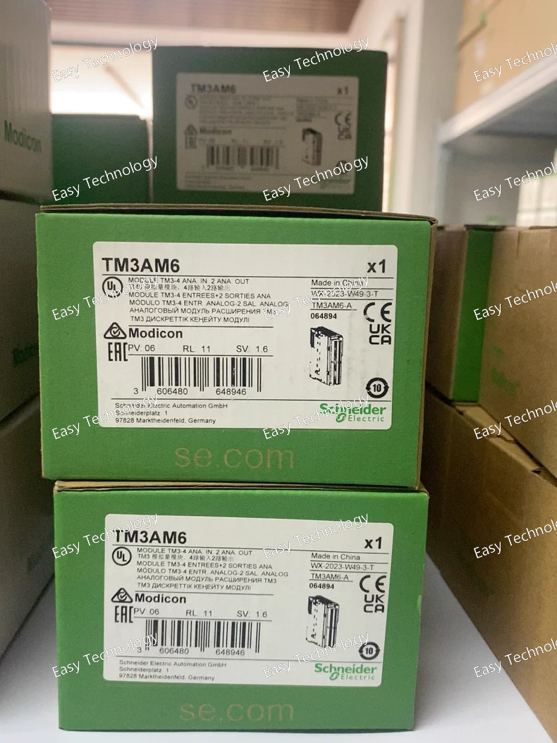The TM3AM6 is an analog input/output expansion module in the Schneider Electric ModiconTM3 I/O range, designed for use with Modicon logic controllers such as M221, M241, M251, and M262. It provides mixed analog I/O for process and machine control applications, allowing flexible handling of voltage and current signals.