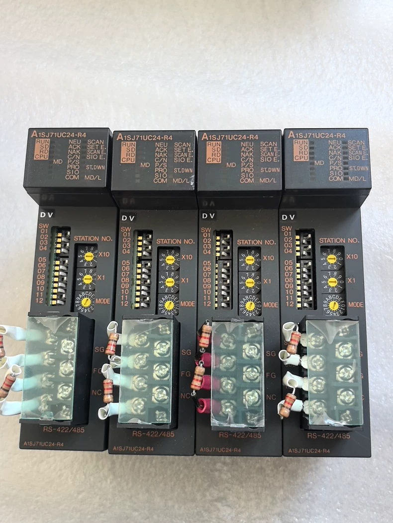 The A1SJ71UC24-R4 is a high-performance serial communication module for Mitsubishi's MELSEC-A Series PLCs, providing RS-232C/RS-422/RS-485 interfaces with enhanced protocol flexibility for industrial automation systems.