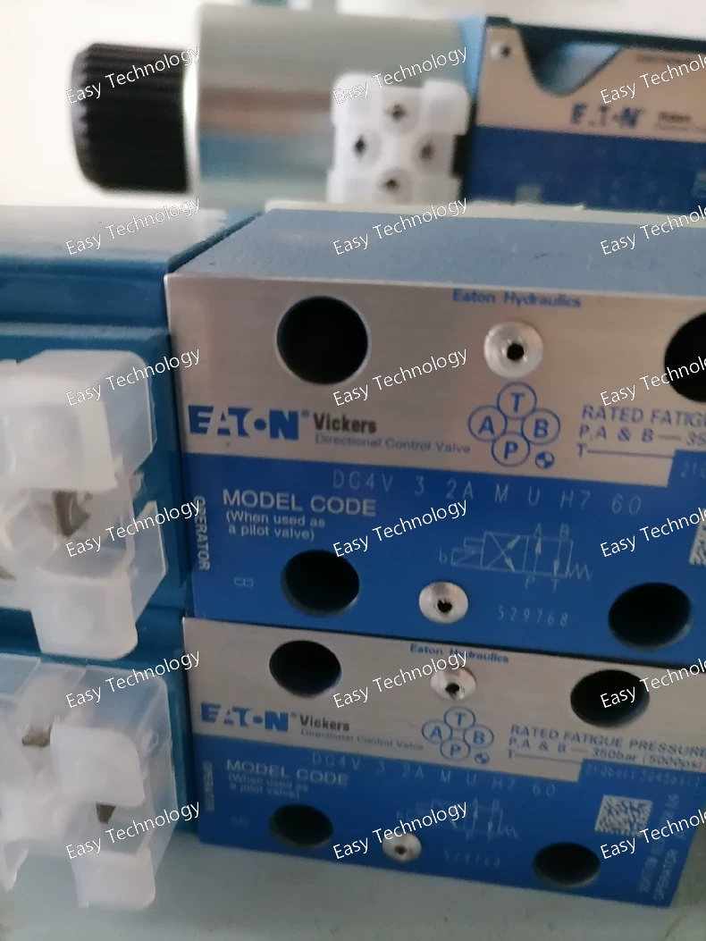 Parameter Description / Value Notes Product Line Eaton DG4V Second Generation Type Proportional Directional Control Valve 4-way, 3-position, Single-Stage Porting Size NG05 (CETOP 5 / NFPA D02) Standard subplate interface Maximum Operating Pressure 350 bar (5,075 psi) Maximum Flow Rate Approx. 40 - 60 L/min (10.5 - 16 US gpm) *Dependent on spool and pressure drop (e.g., Δp = 10 bar).* Spool Type 2CJ "2" denotes a specific high-performance spool series with LVDT feedback. "CJ" indicates a linear or modified linear flow characteristic. Center Position M (Closed Center / All Ports Blocked) In the center (neutral) position, all work ports (A, B) and the pressure port (P) are blocked, and the tank port (T) is open. This holds an actuator in place. Solenoid Type Proportional Solenoid Wet armature design Feedback Type Integrated LVDT The spool has a built-in LVDT for closed-loop position control. Electrical Connector U (DIN 43650 Form A, 4-pin) Standard industrial connector Integrated Electronics H6 On-board amplifier card designed for LVDT feedback valves. Input Signal ±10 VDC or 4-20 mA Selectable via internal dip-switches Supply Voltage (to amplifier) 12-30 VDC For the H6 amplifier IP Rating IP65 (with connector properly installed) Dust-tight and protected against water jets Hydraulic Fluid Mineral-based hydraulic oil to ISO 11158 Fluid Viscosity Range 10 to 400 cSt (50 to 2000 SUS) Operating Temperature Range -20°C to +70°C (-4°F to +158°F)