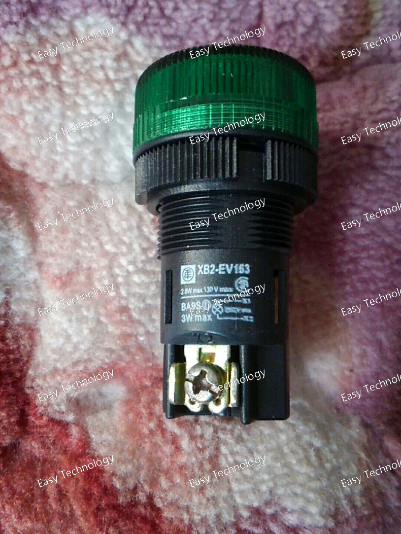 The Schneider Electric XB2EV163 is a 16 mm, 22.5 mm diameter, illuminated push-button indicator from the Harmony XB2 line. It features a rectangular green lens that illuminates when the device is activated, serving as both a visual status indicator and a push-button actuator.