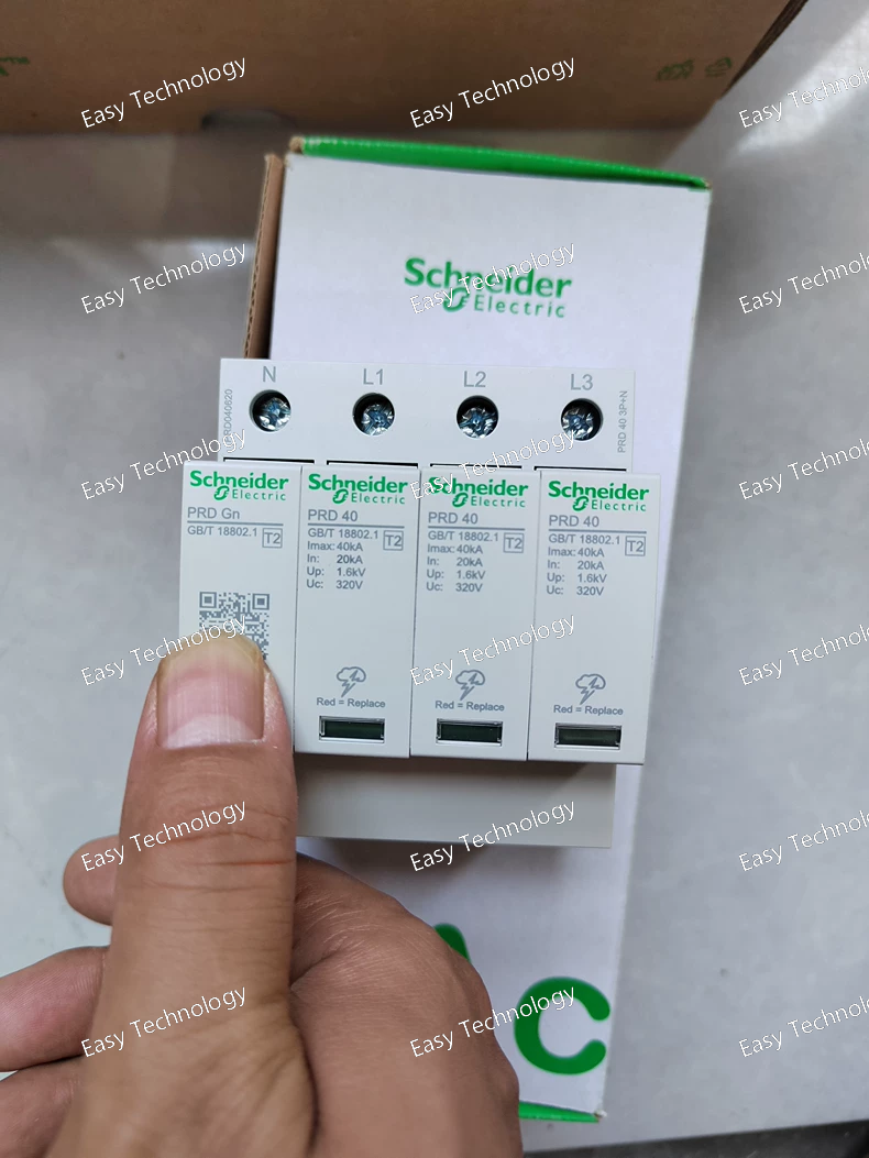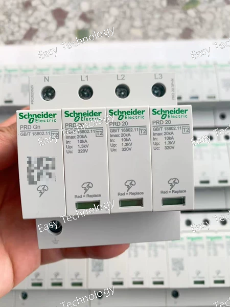 The Schneider Electric PRD is a Type 1+2 Combined Surge Protective Device (SPD) with a 3P+N (3-phase + neutral) configuration and a maximum discharge current (Imax) of 20 kA per phase. Designed for installation at the service entrance or main distribution board, it provides the first and main line of defense against direct or indirect lightning strikes and large switching transients in low-voltage AC power systems.