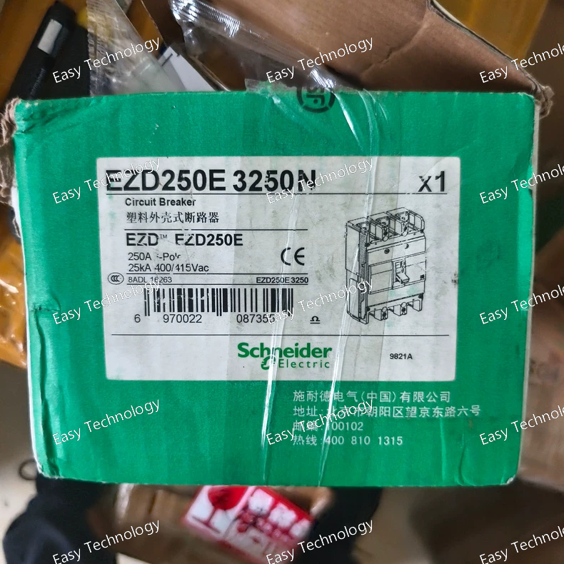 The Schneider Electric Acti 9 iEZ EZD250E is a three-pole, 250A electronic circuit breaker from the Acti 9 iEZ range. The specific model code EZD250E3250N precisely defines it as having a Standard (N) breaking capacity, equipped with a basic E-type electronic trip unit set to 250A. This device is designed for reliable and adjustable protection of feeder circuits and distribution boards in commercial and industrial three-phase systems where a standard level of short-circuit performance and precise protection coordination are required.
