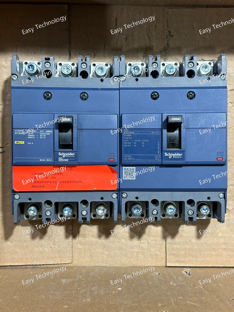 The Schneider Electric Acti 9 iEZ EZD250E is a three-pole, 250A electronic circuit breaker from the advanced Acti 9 iEZ range. It is equipped with a standard E-type electronic trip unit, providing fully adjustable overload and short-circuit protection.