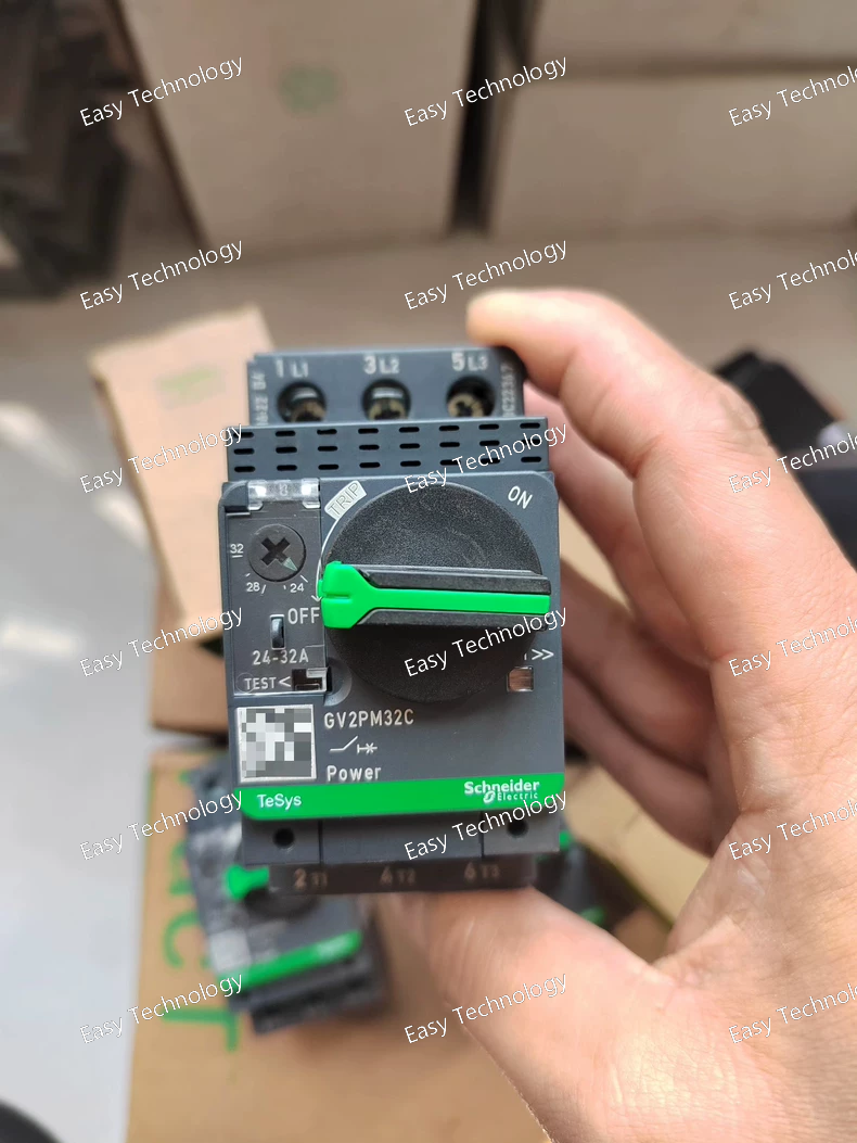 The Schneider Electric TeSys GV2PM32C is a manual motor starter and protector (MMSP) from the classic and widely-used GV2 series. It is an integrated, compact device designed for direct-on-line (DOL) starting, stopping, and comprehensive protection of three-phase asynchronous motors. The "PM32C" suffix indicates it includes both a thermal overload relay (P) and a magnetic short-circuit trip unit (M), with a C-curve characteristic, sized for a 32A frame.