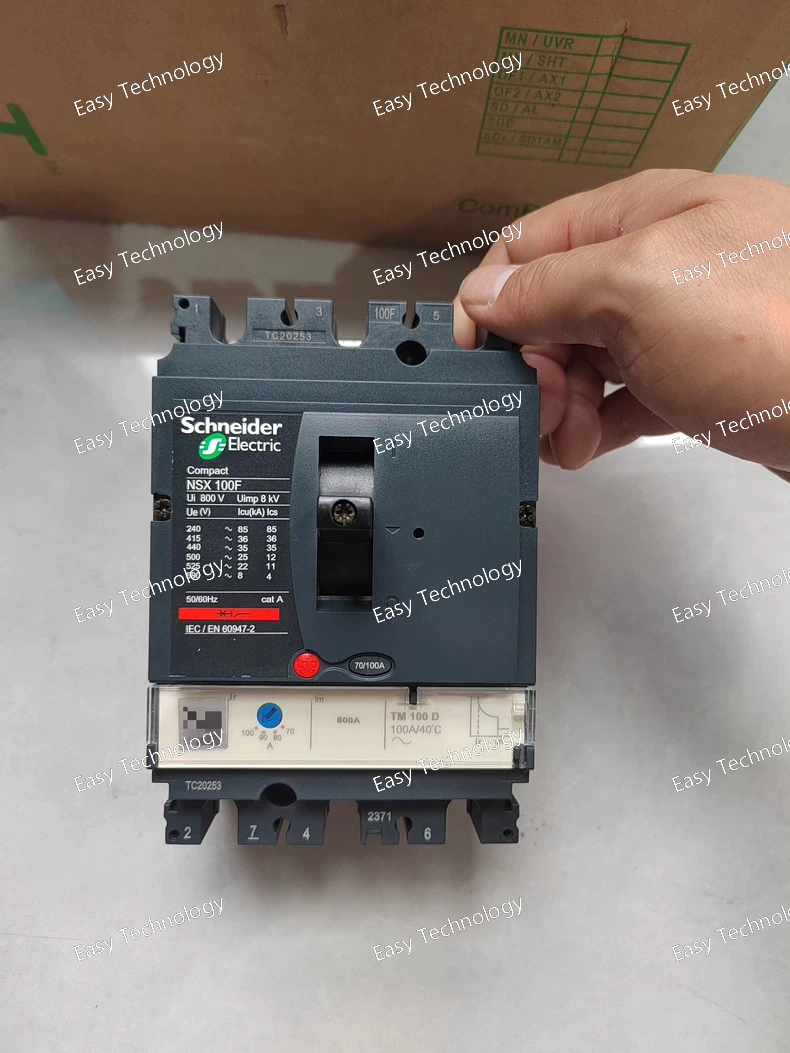 The Schneider Electric Masterpact NSX100F is a compact, three-pole, 100A molded case circuit breaker (MCCB) from the premium Masterpact NSX range. The "F" suffix denotes its High breaking capacity. Designed for space-conscious yet demanding applications,