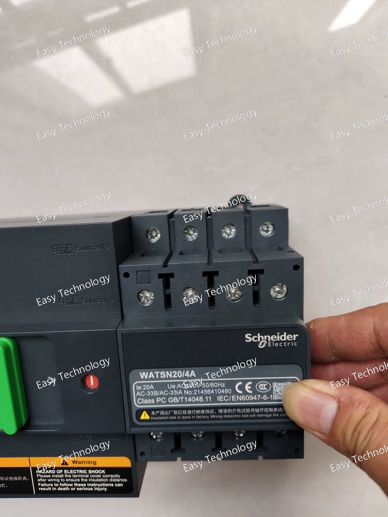 The Schneider Electric WATSN20/4A is a four‑pole automatic transfer switch (ATS) designed for three‑phase low‑voltage electrical distribution systems.
