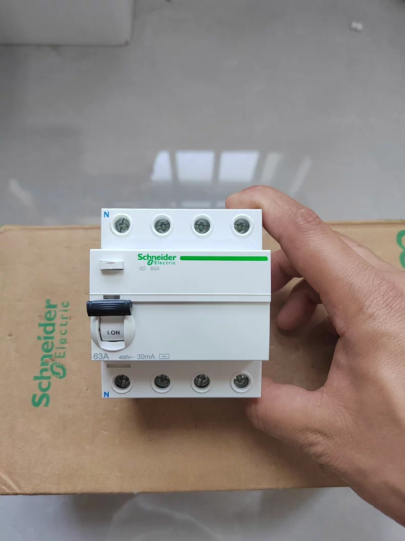 The Schneider Electric iID 4P 63A 30mA is a four‑pole residual current circuit breaker (RCBO) that combines overcurrent protection (overload and short‑circuit) with earth‑leakage protection in a single compact device.