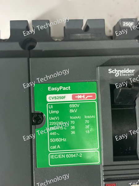 The Schneider Electric EasyPact CVS250F is a 3‑pole molded case circuit breaker (MCCB) rated at 250 A for three‑phase AC distribution systems. It provides reliable thermal‑magnetic protection against overloads and short circuits and is suited for industrial and commercial power distribution applications.