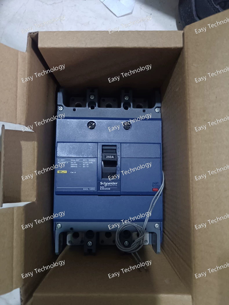The Schneider Electric EZD250E is a compact 3‑pole molded case circuit breaker (MCCB) rated at 250 A for industrial and commercial electrical distribution. It provides reliable thermal‑magnetic protection against overloads and short circuits in three‑phase systems and is suitable for panelboards, feeder protection, and power distribution circuits.