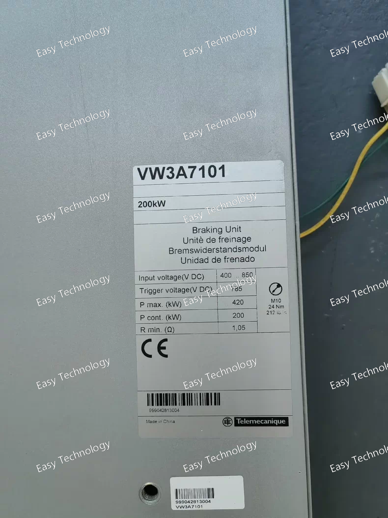 Schneider Electric VW3A7101 is a high‑power resistance braking unit designed for use with Altivar series variable speed drives (VSDs). It enables controlled braking of the motor by dissipating regenerated energy into an external resistor during deceleration to a stop or during generator‑mode operation. The unit is engineered to support heavy‑duty applications, ensuring stable braking performance and thermal protection for the drive system.
