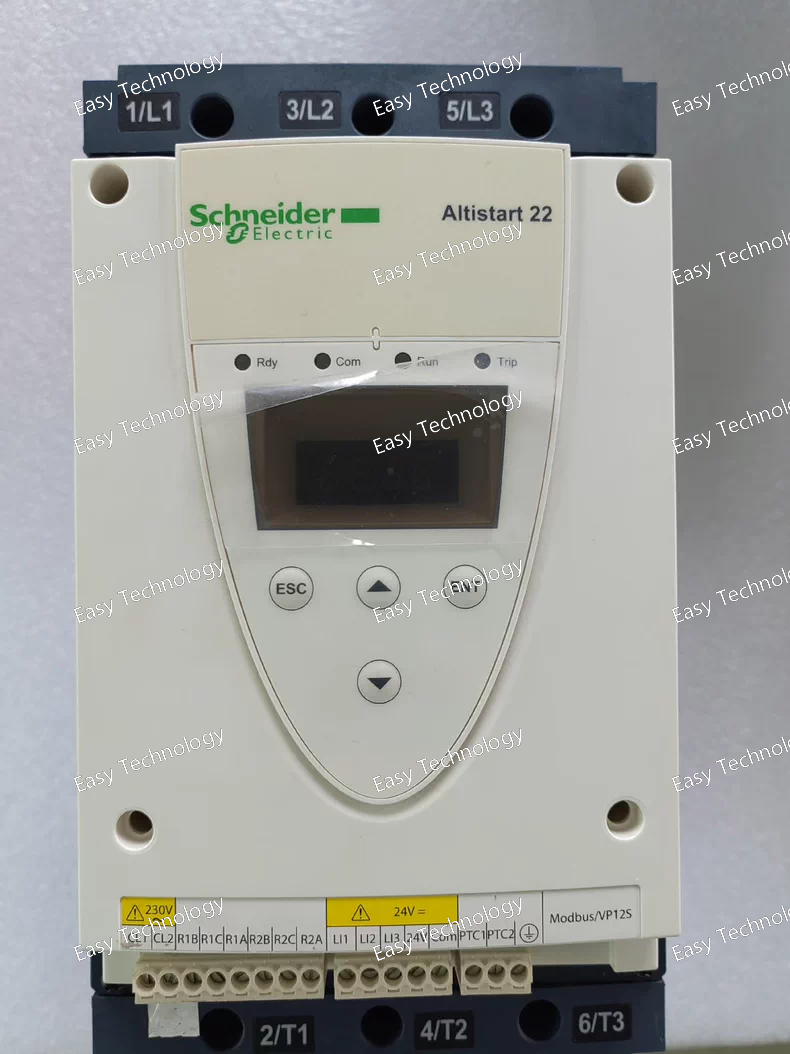 Schneider Electric ATS22D75Q is a three‑phase soft starter from the Altistart 22 series designed to provide smooth starting and stopping of three‑phase asynchronous motors in industrial applications. It reduces mechanical stress on the driven equipment and limits electrical inrush current by controlling the voltage and torque during motor start‑up. The integrated bypass minimizes heat generation and noise during running operation, and configuration can be managed via compatible software. The unit is suitable for applications such as pumps, fans, compressors, conveyors and other machinery requiring controlled motor acceleration.
