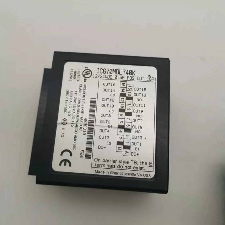 GE IC694MDL655 – 16-point, 12-24V DC sourcing digital output module for RX3i PLC systems. Features 0.5A per point (2A/common) and 1500V isolation. VersaMax compatible.