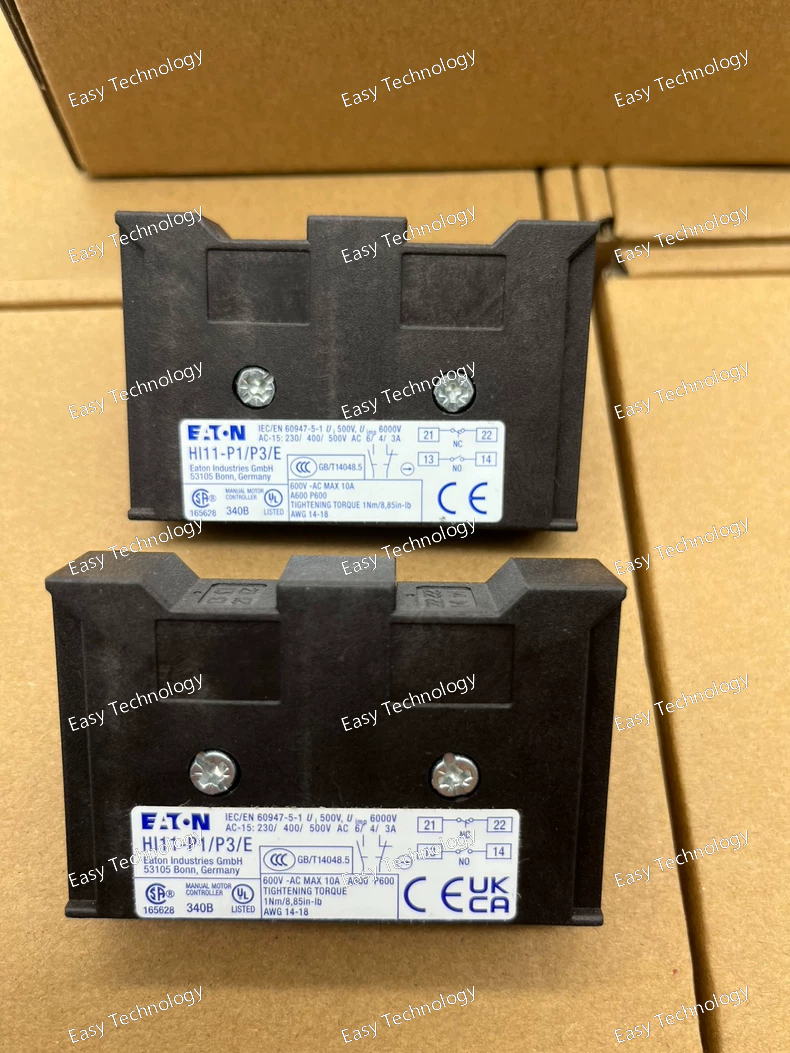 Parameter Specification Product Model HI11-P1/P3/E Product Type Mechanical Interlock Kit Compatibility Eaton contactors (e.g., DILA, DILM series) with 1-pole and 3-pole configurations Material Reinforced thermoplastic or metal Mounting Direct attachment to contactors Safety Standard IEC 60947-1, ISO 13849-1 (as part of safety system)