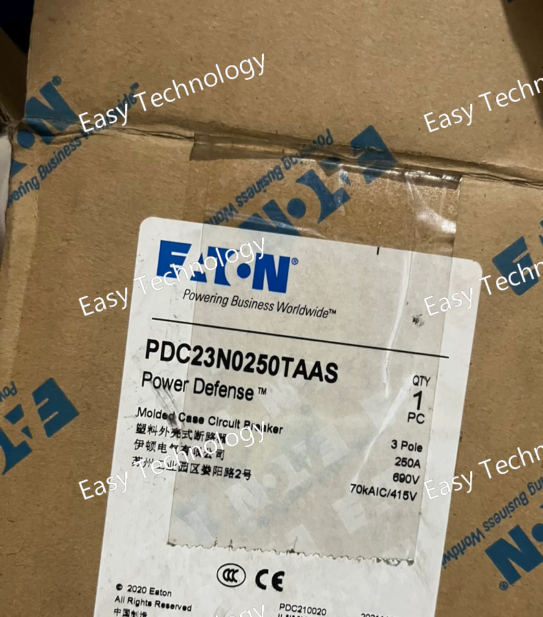 Parameter Specification Manufacturer / Series Eaton, PDC Series (Combination Motor Controller) Model Number PDC23N0250TAAS Product Type Combination Motor Controller (Soft Starter + Protector) Rated Current 250 Amps Motor Power Rating Approximately 125 HP / 93 kW (at 460V AC) - Exact HP depends on voltage; verify from datasheet. Voltage Rating Typically 200-575V AC, 3-Phase, 50/60 Hz Short-Circuit Withstand High, typically 65 kA or 100 kA (Must verify from datasheet) Control Method Digital, microprocessor-based solid-state soft starting Key Features • Integrated Molded Case Switch (Disconnect) • Solid-State Soft Start/Stop • Advanced Motor Protection (Overload, Phase Loss, etc.) • Diagnostic Capabilities Communication Integrated communication capabilities (e.g., DeviceNet, Modbus) are typically standard. Mounting Fixed Mounting Standards Compliance UL 508, IEC 60947-4-2, CSA C22.2