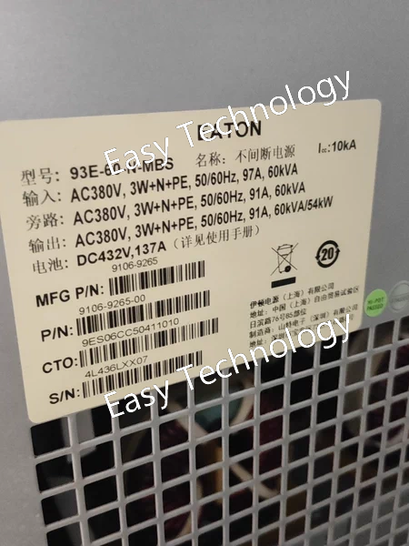 Technical Parameters Parameter Specification Product Series Eaton 93E Product Type Metered, Switched (by branch) PDU, Vertical (0U) Nominal Input Power 60 kVA / 60 kW Input Type 3-Phase + Neutral + Ground Input Voltage 200/208V AC or 400/415V AC (Specific voltage to be confirmed) Input Current Typically 150A or 100A (depending on the specific voltage rating) Frequency 50/60 Hz Output Outlets Multiple outlet banks (Typically IEC C13/C19, NEMA, or a combination) Branch Circuit Breakers Multiple branches (e.g., 1P or 3P breakers, 16A, 20A, or 32A) Monitoring & Control Metering: Input current (per phase), voltage (L-N, L-L), power (kW), energy (kWh), power factor Switching: Individual branch circuit control (ON/OFF/reboot) Communication: Built-in Network Card (10/100/1000 Ethernet) Protocols: Web, SSH, SNMP, Telnet Display Local LCD for status and basic metrics Form Factor Vertical (0U) Mounting Zero U, vertical mounting in 19-inch rack Management Features Power sequencing, alarm thresholds, event logging, user access control Standards Compliance UL 60950-1, cULus, CE, RoHS