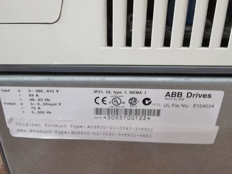 Key Parameters Core Specifications Power: 40kW (55HP) Input: 3-phase 380-480V AC (±10%), 50/60Hz Output Current: 80A Overload: 150% for 60s Control: DTC (Direct Torque Control) Efficiency: >98% Modules P901 Brake Chopper Braking power: 40kW cont. / 60kW peak (60s) Requires external resistor N661 Encoder Interface Supports incremental encoders Resolution: Up to 4096 ppr Protocols: RS422/TTL Performance Speed accuracy: ±0.01% (with encoder) Torque accuracy: ±1% Switching freq.: 1-12kHz (adjustable) Physical Dimensions: 482×245×227mm (H×W×D) Weight: 18kg Cooling: Forced air Ambient Temp: 0-40°C Certifications CE, UL, cUL SIL3/PL e