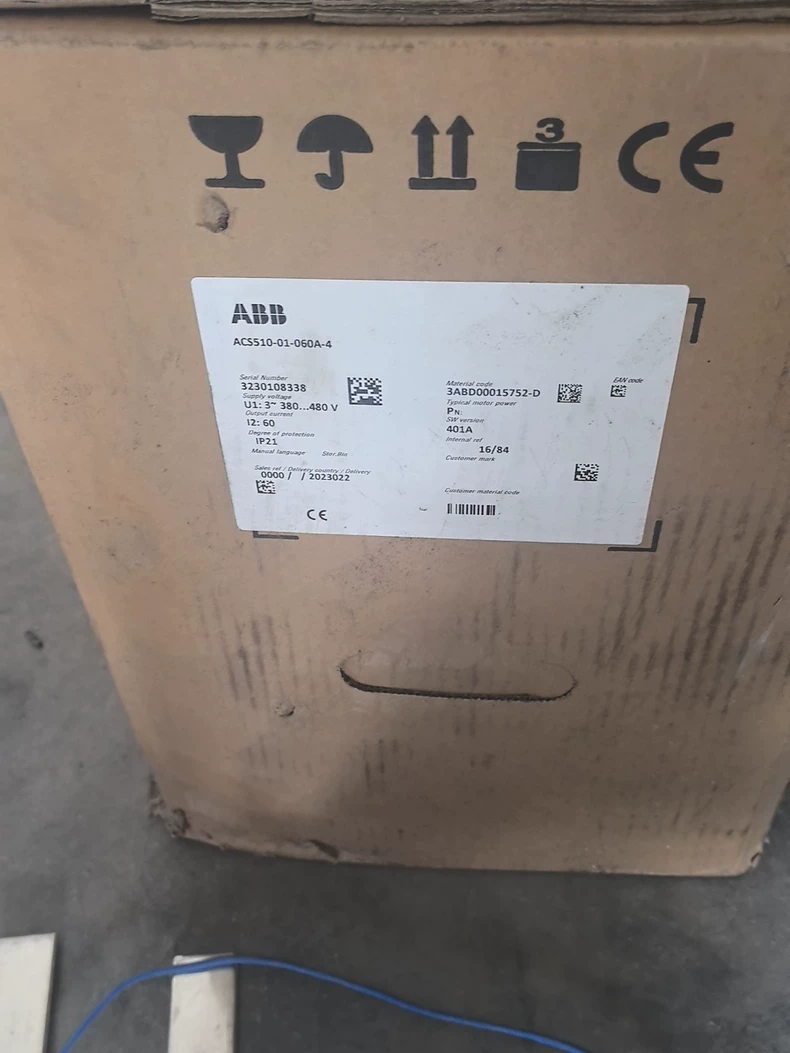 Key Specifications Power Rating: 55 kW (75 HP) Input Voltage: 3-phase 380-480V AC (±10%), 50/60Hz Output Current: 110 A Overload Capacity: 110% continuous, 150% for 60s Control Method: Sensorless vector control Efficiency: >98% (IE4 equivalent) THDi: <5% (with optional filter) Technical Highlights ✔ HVAC-Specific Intelligence Adaptive pump/fan control algorithms Automatic energy optimization (up to 25% savings) Built-in multi-pump controller Anti-condensation function ✔ Smart Connectivity Embedded BACnet MS/TP and Modbus RTU Cloud-ready with ABB Ability™ Optional wireless module (Wi-Fi/4G) Predictive maintenance capabilities ✔ Advanced Protection Motor thermal modeling (PTC/Pt100) Phase loss protection Surge protection (6kV/3kA) Safe Torque Off (STO) Physical Specifications Dimensions: 482 × 800 × 350 mm (H×W×D) Weight: 42 kg Enclosure: IP21 (IP55 kit available) Cooling: Forced air with ECO mode Ambient Range: -15°C to +50°C (5°F to 122°F) Certifications UL 61800-5-1 CE cULus EN 61800-3 Cat C2 ISO 13849-1 PL c