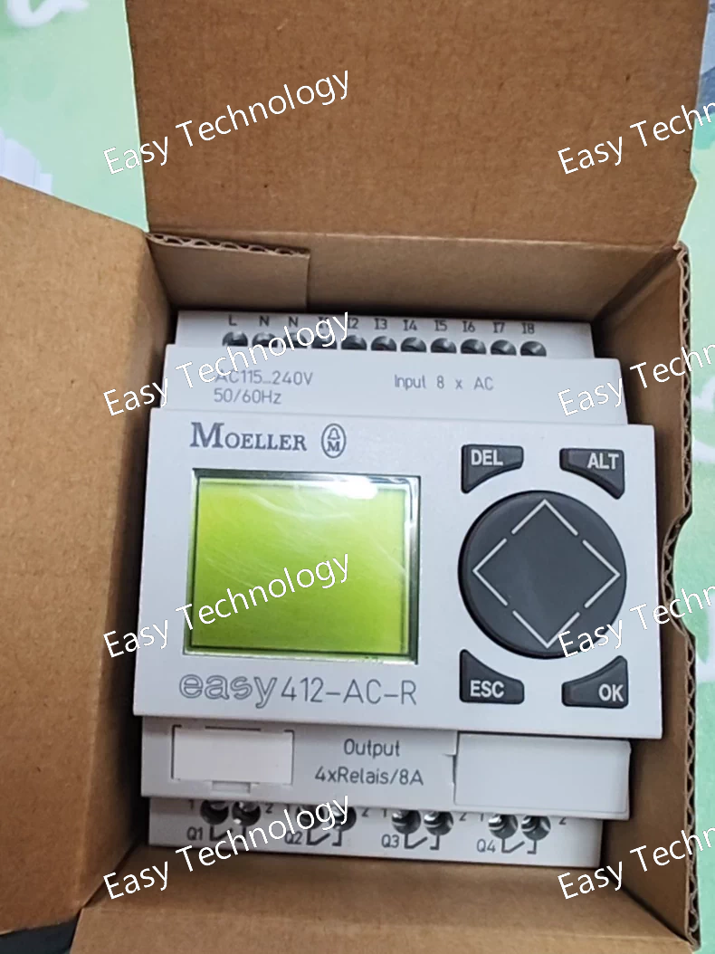 Technical Parameters Parameter Category Specification Product Model EASY412-AC-R Product Line EASY400 Device Type Programmable Logic Relay (PLR) / Smart Relay Supply Voltage 100-240 V AC (85-264 V AC, 50/60 Hz) Power Consumption Typically 8 W (including loads) Core Processor 8-bit microcontroller User Program Memory 500 function blocks (non-volatile) Data Memory 64 flags (non-volatile) Real-Time Clock (RTC) Not available on this model Digital Inputs 6 x Digital Inputs • 24 V DC (sinking/sourcing) Digital Outputs 4 x Relay Outputs • Switching Capacity: 250 V AC / 30 V DC Max. • 8 A (at 250 V AC Resistive) • 5 A (at 250 V AC Inductive, cos φ=0.4) • Note: The total current for all outputs combined must not exceed 16 A. Analog Inputs Not available on this model. High-Speed Counters Not available on this model. Display & Operation No built-in display. Status indicated by LEDs. Programming and monitoring require a PC. Programming Interface Integrated EASY-PC interface (via RJ12 connector) Communication • EASY-LINK: For networking up to 12 EASY400/600/800 devices (via RJ12 connectors) • PC Connection: For programming with EASY-SOFT software Programming Software Eaton EASY-SOFT (Version 6 or higher recommended) Protection Rating Front panel: IP65 (when mounted) Housing: IP20 Mounting DIN rail mounting (35 mm) Ambient Temperature -25 °C to +55 °C (Operation) -40 °C to +70 °C (Storage) Dimensions (H x W x D) Approx. 90 x 71.5 x 64 mm