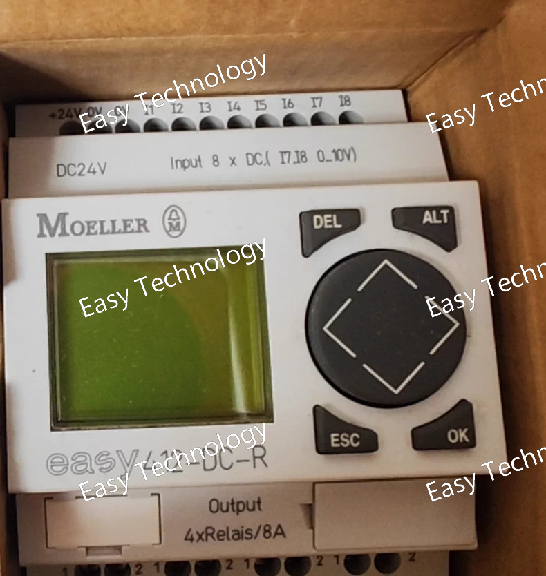 Technical Parameters Parameter Category Specification Product Model EASY719-DC-RC Product Line EASY700 Device Type Programmable Logic Relay (PLR) / Smart Relay Supply Voltage 24 V DC (19.2 - 28.8 V DC) Power Consumption Typically 15 W (including loads) Core Processor 32-bit microcontroller User Program Memory 2,000 function blocks (non-volatile) Data Memory 512 flags (non-volatile) Real-Time Clock (RTC) Integrated (buffered) Digital Inputs 12 x Digital Inputs • 24 V DC (sinking/sourcing) • 4 of them can be used as analog inputs (0-10 V, 0/4-20 mA) or high-speed counters (5 kHz) Digital Outputs 8 x Relay Outputs • Switching Capacity: 250 V AC / 30 V DC Max. • 8 A (at 250 V AC Resistive) • 5 A (at 250 V AC Inductive, cos φ=0.4) Analog Inputs 4 x Analog Inputs (shared with 4 digital inputs) • Configurable: 0 - 10 V, 0/4 - 20 mA • Resolution: 10 bit High-Speed Counters 4 x High-Speed Counters (shared with 4 digital inputs) • Frequency: up to 5 kHz Display & Operation Integrated Color Graphic Display (RC) • High-resolution TFT color screen • 8 function keys with customizable labels Programming Interface Integrated EASY-PC interface (via RJ12 connector) & USB port Communication • EASY-LINK: For networking up to 12 EASY devices. • Ethernet (optional module): For integration into plant networks and remote access. • PC Connection: Via USB or RJ12. Programming Software Eaton EASY-SOFT (Version 7 or higher recommended for full functionality) Protection Rating Front panel: IP65 (when mounted) Housing: IP20 Mounting DIN rail mounting (35 mm) Ambient Temperature -25 °C to +55 °C (Operation) -40 °C to +70 °C (Storage) Dimensions (H x W x D) Approx. 126 x 90 x 64 mm